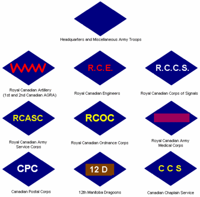 cases a plain coloured shape, such as the Royal Canadian Army Medical