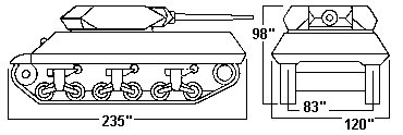 The vehicle's range was 220km on good surfaces with a maximum speed of 53 kph on roads. The vehicle was powered by a front-mounted, turbocharged 295kW Detroit Diesel 8V71T engine driving an Allison XTG-411 transmission.